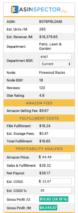You don’t even have to leave the Amazon listing to get some key data points with the ASINspector Pro
